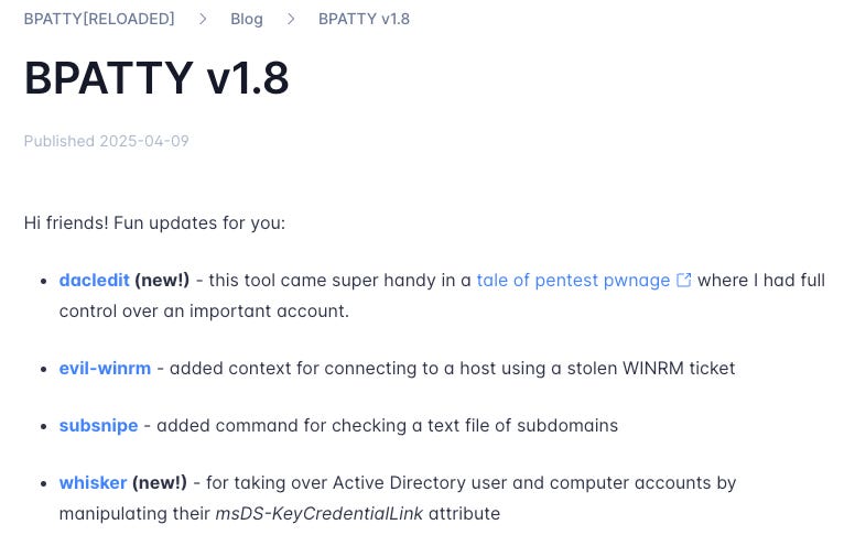 I just pushed v1.8 updates to BPATTY, which you can read about here. Changes include: